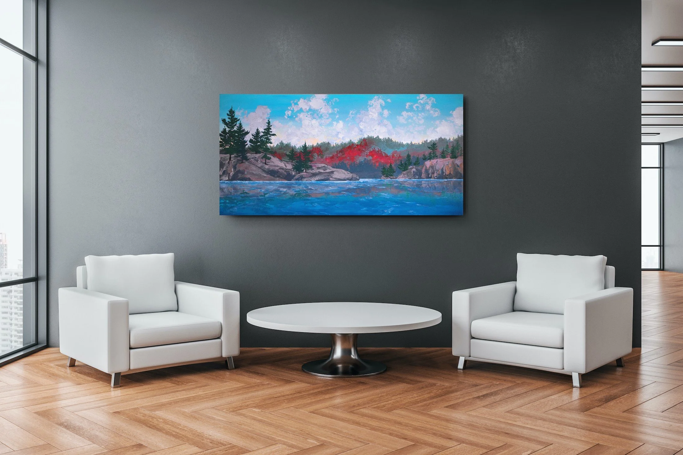 Paragliding at Clover Point will thrive as a statement painting against any toned wall and will add a sense of happy adventure to any space.
